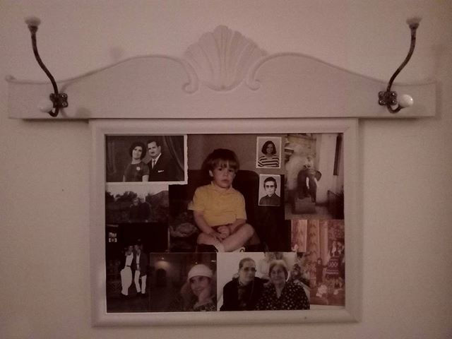 Piece of wood on top of the cloakroom, belonged to a wardrobe, in brown wood that i painted in white as well as the frame below. The centenarian hangers with porcelain polka dots, give it an old charm but also very fashionable these days. Instead of putting a mirror at the frame below, as it had picture frames the most scattered around the house, i decided to frame them all together, form a touch more personal and to my liking. A style a little different than usual.